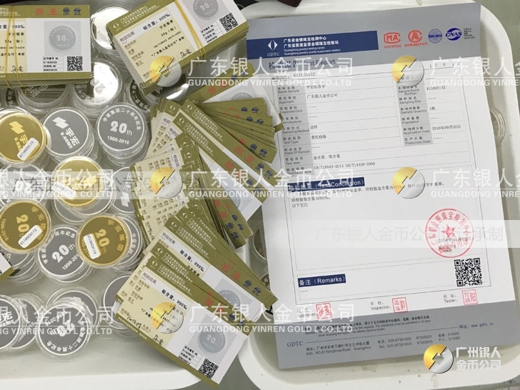 廣東銀人金幣公司承接客戶個性化定制的金銀幣、金銀章、金銀條、金銀牌、金銀盤均由國家質(zhì)監(jiān)部門、嚴格檢測、權(quán)威鑒定: