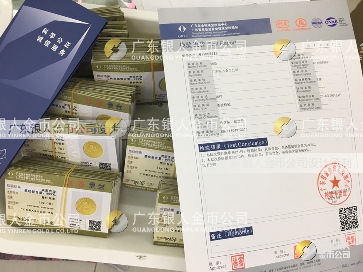 廣東銀人金幣公司承接客戶個性化定制的金銀幣、金銀章、金銀條、金銀牌、金銀盤均由國家質(zhì)監(jiān)部門、嚴(yán)格檢測、權(quán)威鑒定: