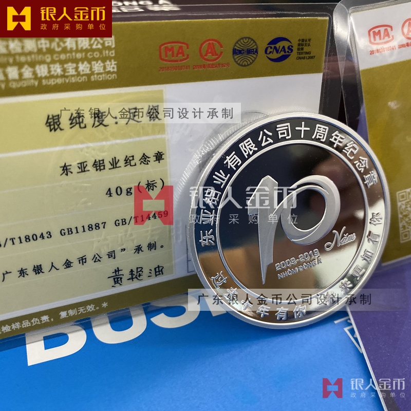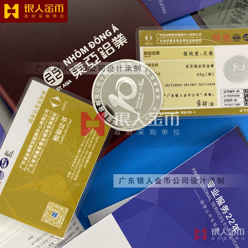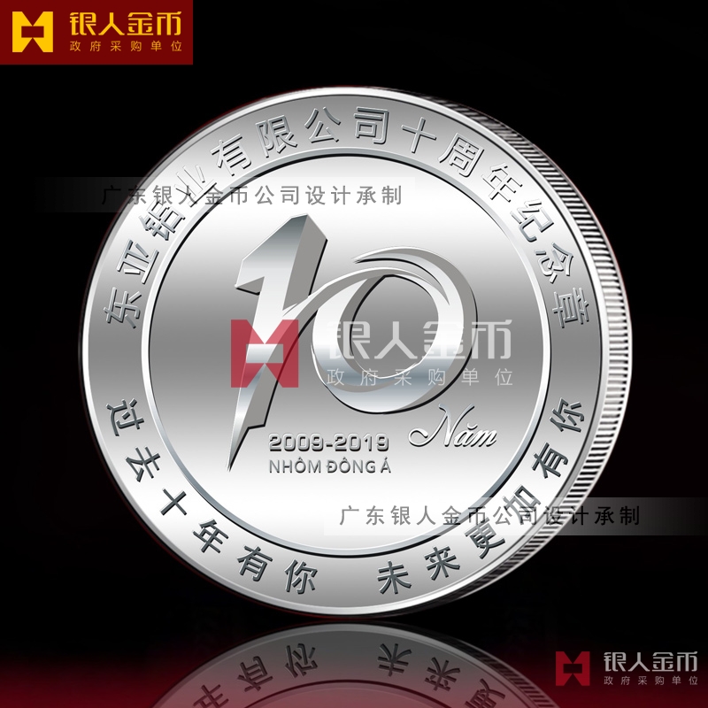 東亞鋁業集團在創業十年后恰逢公司成立10周年紀念慶典、委托定制金銀紀念幣1200枚。