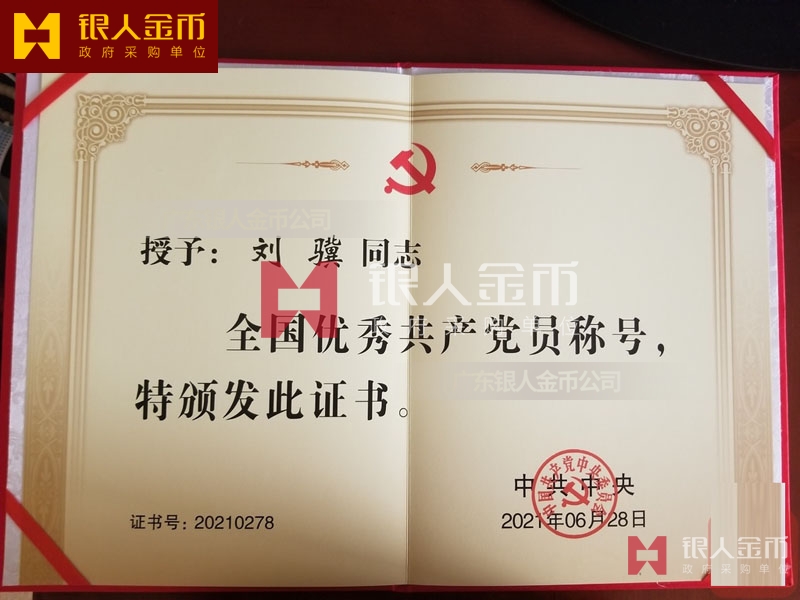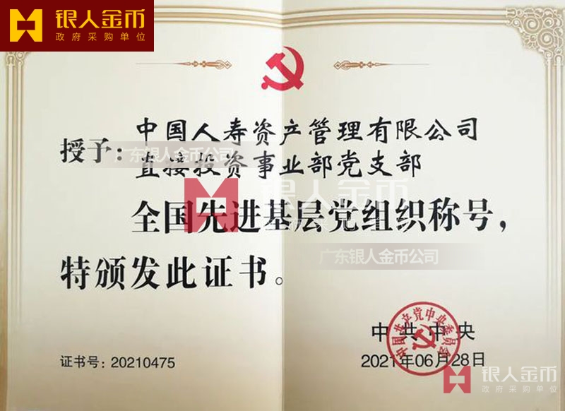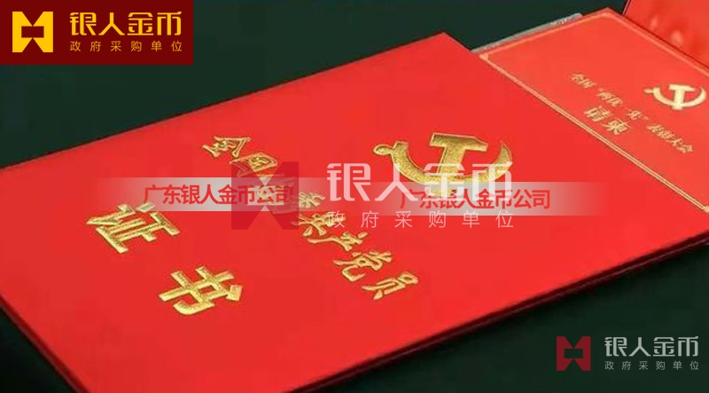 【證書制作】 廣東銀人金幣公司-榮譽證書制作廠家
