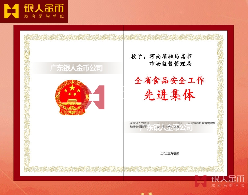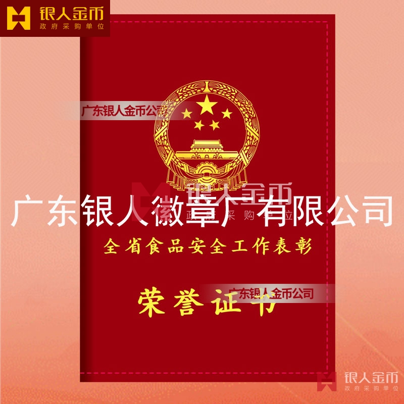 河南省政府全省食品安全工作表彰獎勵證書定制制作_河南省人力資源和社會保障廳獎勵表彰榮譽證書定做_河南省市場監督管理局榮譽獎勵表彰證書訂制